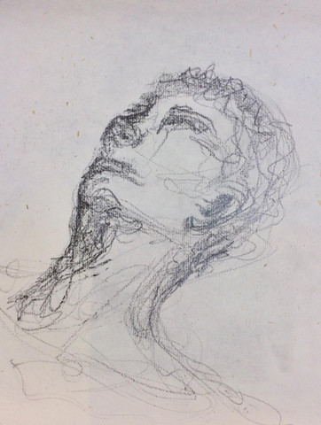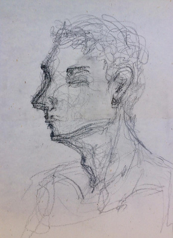 Después, hice un retrato a mi compañero Pedro, debíamos leer el relieve del rostro de nuestro compañero con una mirada háptica, rozandole con la visión.